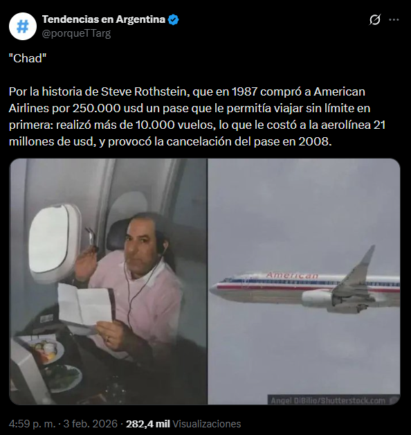 Hoy estaba en X y vi que un tipo compró una "licencia lifetime" a American Airlines por $250.000. Esta licencia le permitía viajar en primera clase sin límite de vuelos para siempre. En 2008 la aerolínea le canceló su licencia y el pasajero les demandó. La historia no acaba ahí, pero este post no va de eso hoy.